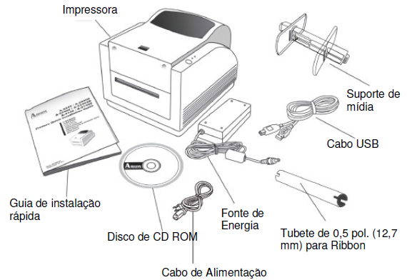 Quando você adquire uma AME-3230 da Argox, os itens que acompanham a impressora são: