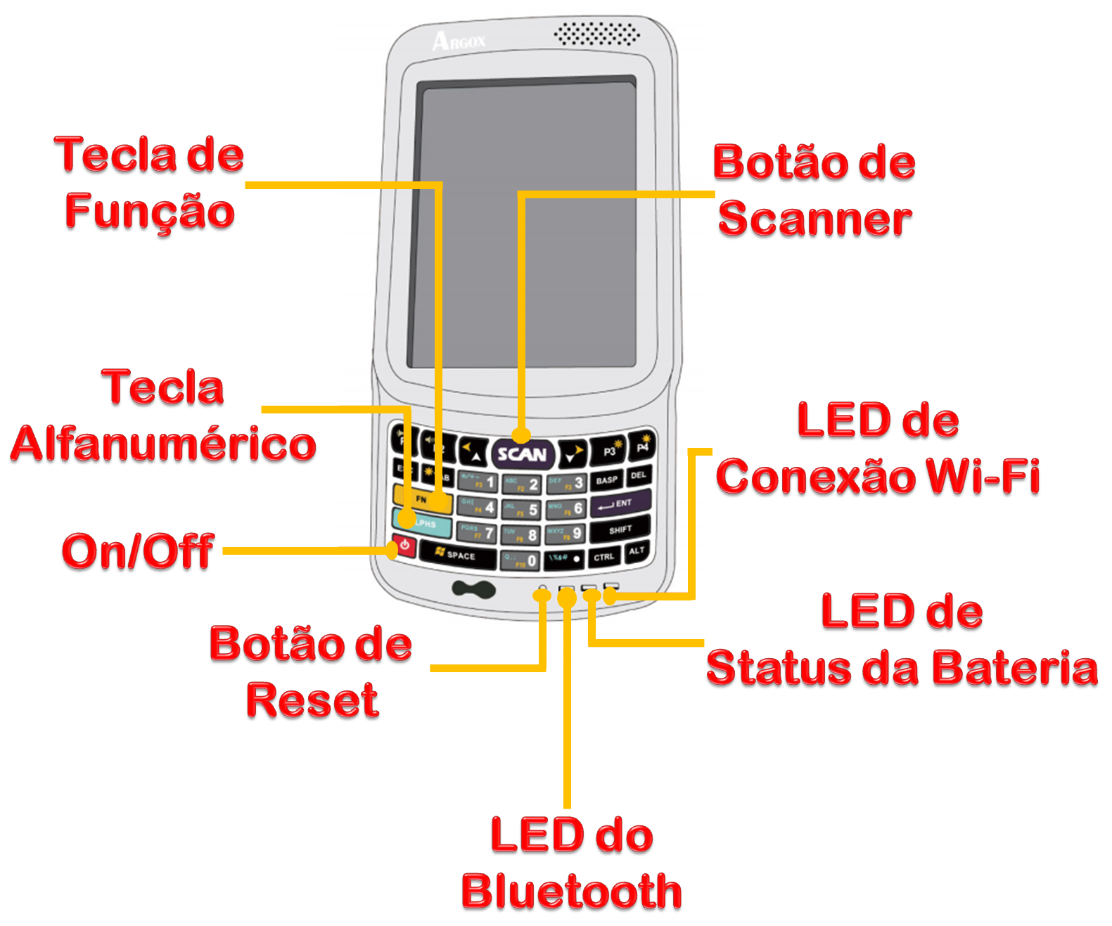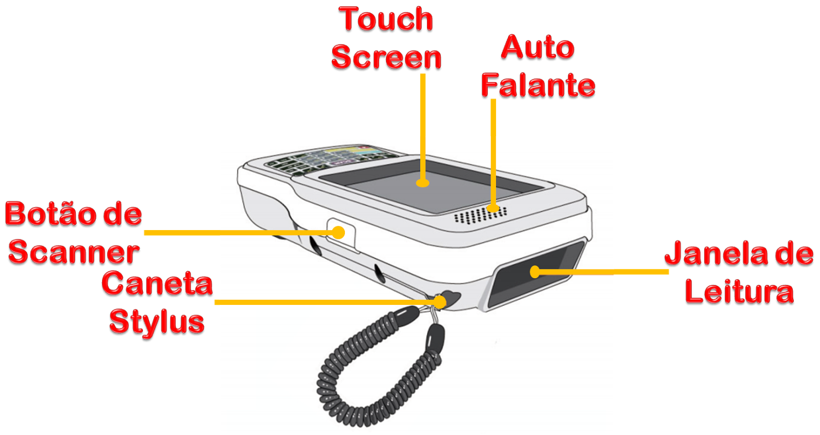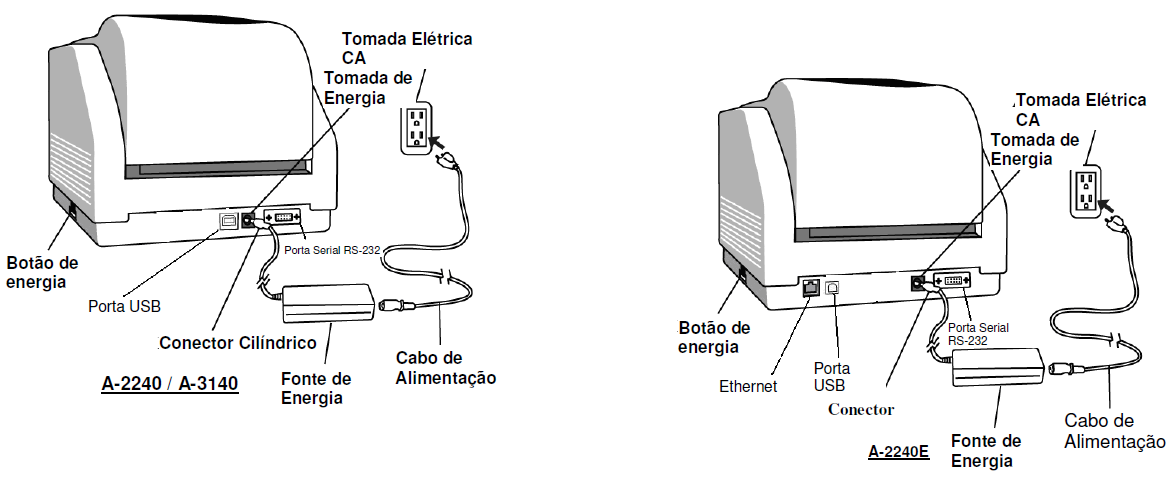 Confira abaixo a impressora portátil AME-3230 detalhada, mostrando suas principais partes: